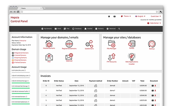 One of the most essential aspects of the eTesLa Servers Control Panel is that it is the only Control Panel that you will need – you will no longer have to log into different places. You can finally manage your domains, your sites and your payment transactions from a single place. Scroll down to see what else we have prepared for you.